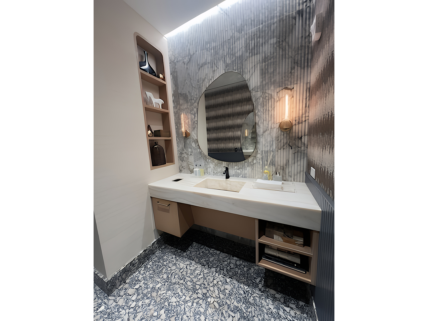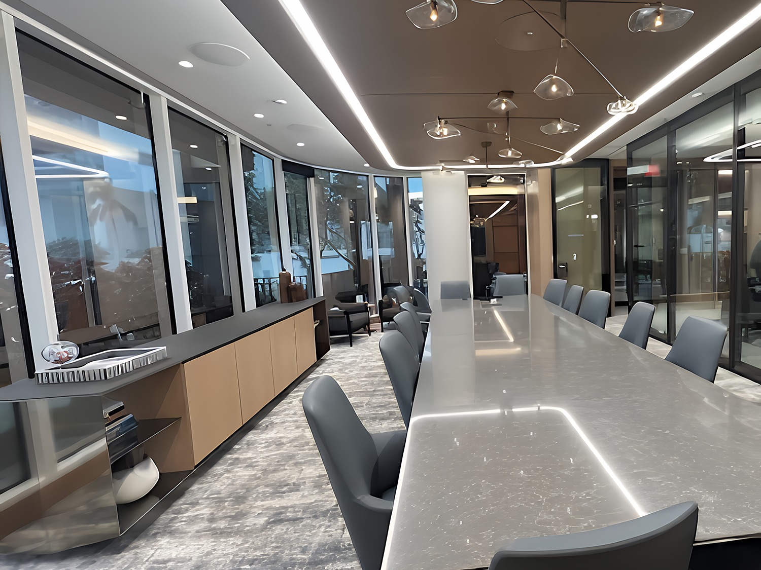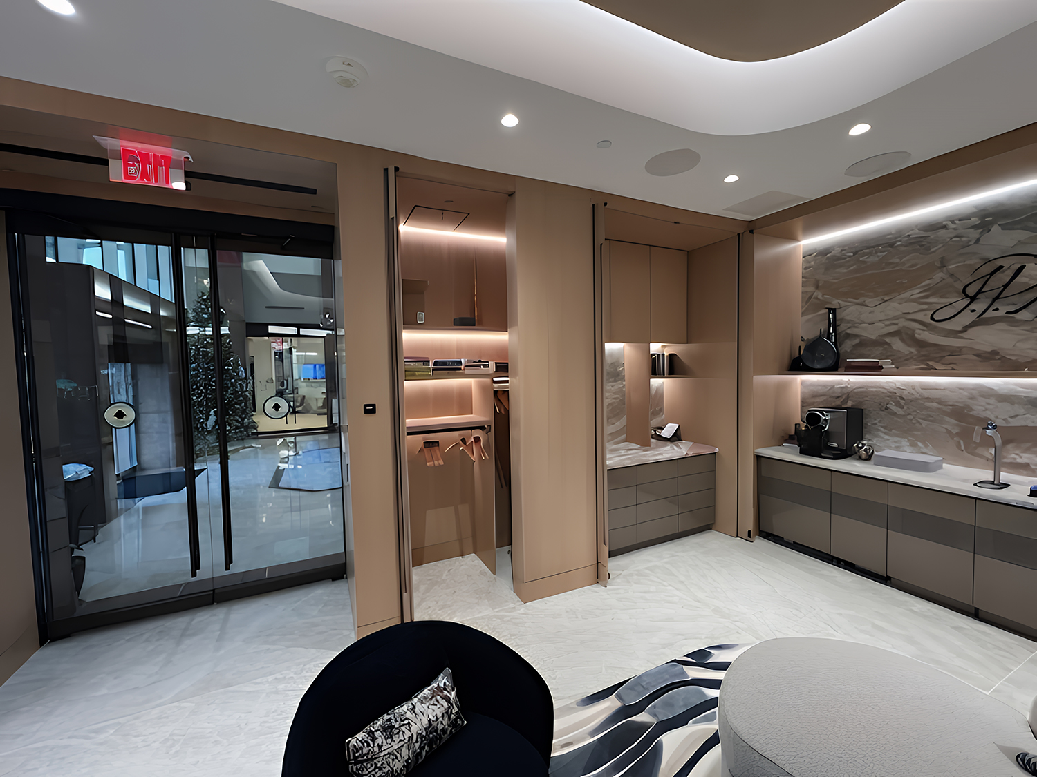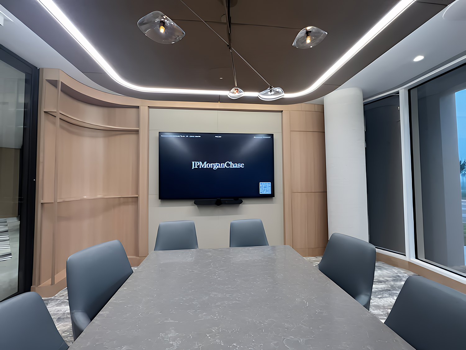 - Scope of Work: Architectural millwork and custom client-facing fixtures, panels, doors, including wood, stone, and metal integrations. All elements were fabricated and installed to align with the design intent and performance expectations of a flagship financial environment.