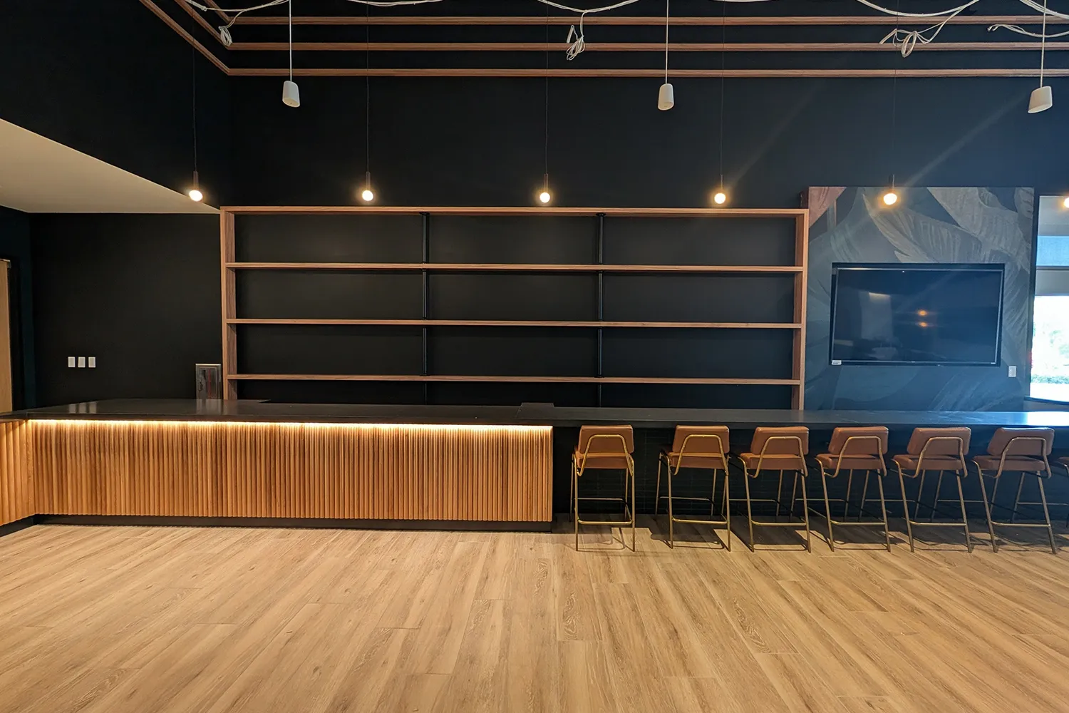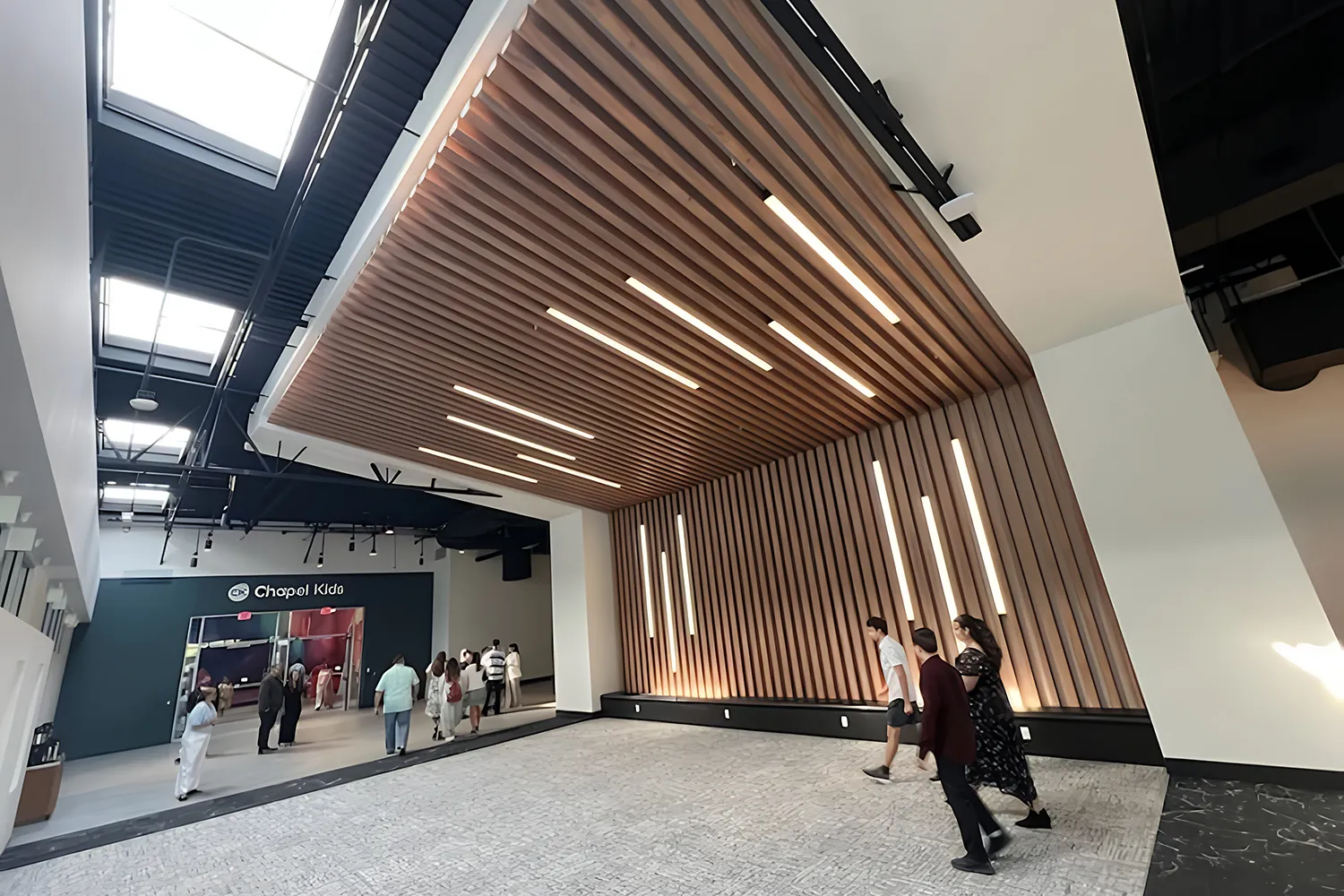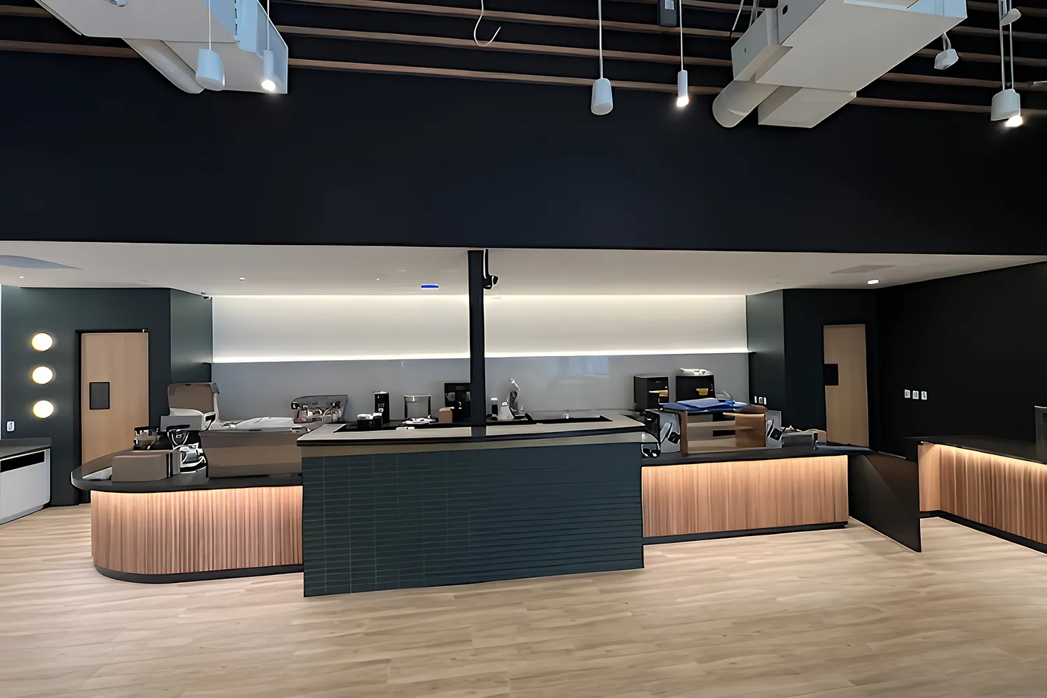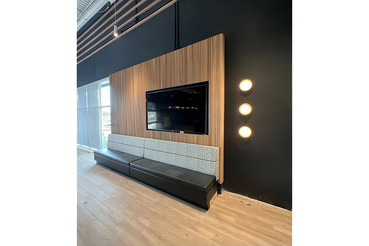 - Scope of Work: Plastic laminate casework, stone countertops, trim, custom check-in and lobby millwork, upholstered banquettes, tambour paneling, wall and ceiling fins.