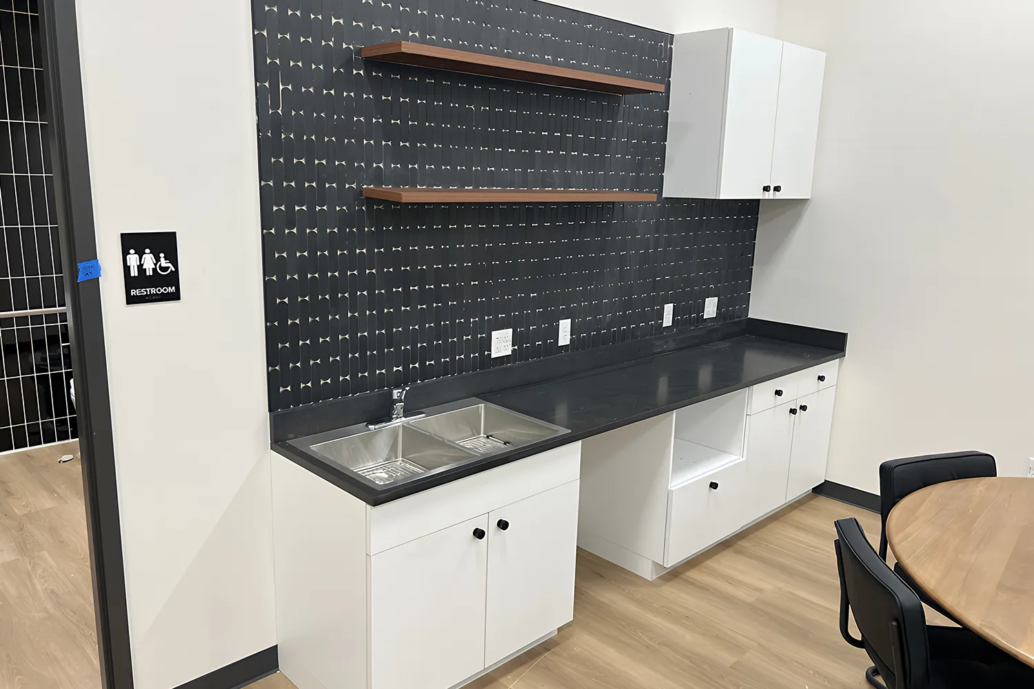 “I want to give a big THANK YOU to the Atlantic team for executing perfectly on my vision for this project. I visited the site and am in complete awe. Very impressed with the quality of work. The frames were impeccable, the floating shelves amazing, and the matching grain on the Board Room tables. Fantastic work!”